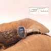 Handgemaakte zilveren ring met 9 bij 5,5 mm peervormig geslepen Labradoriet